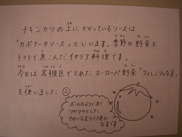*カポナータソースには、岩槻区で収穫されたヨーロッパ野菜「フィレンツェなす」を使用しました。