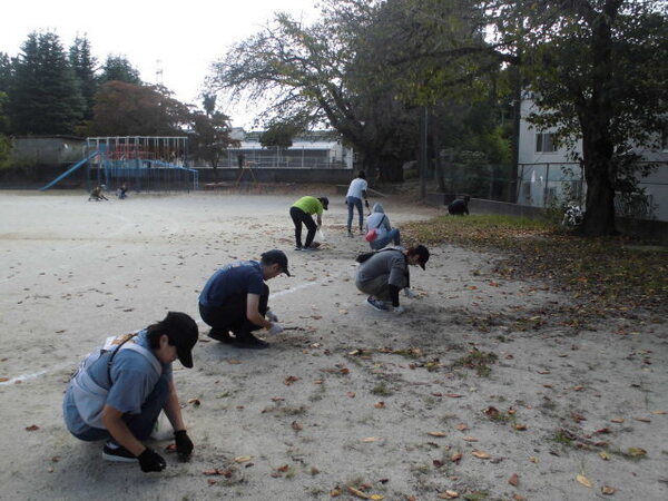 まだまだ暑さの残る中、たくさんの保護者の皆様に、校庭整備をしていただきました。運動会で子どもたちが走るコース上にある雑草やタイヤ遊具付近の落ち葉をきれいにお掃除していただきました。「どうもありがとうございました。」