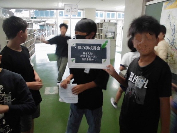 緑の募金活動担当の6年生が、朝の登校時間に、昇降口付近で、募金活動をしていました。「募金おねがいします。」と声高らかに、みんなの優しい気持ちを集めてくれました。