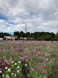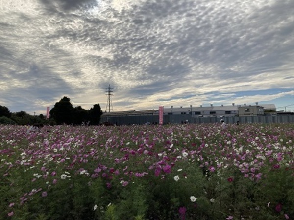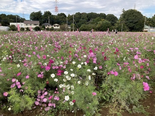 紫色、白色、薄い桃色等、コスモスの花が区画前面に咲いていました。慈恩寺小の子どもたちも芋掘り、ミカン狩りを楽しんでいました。正に「絶景」でした。