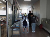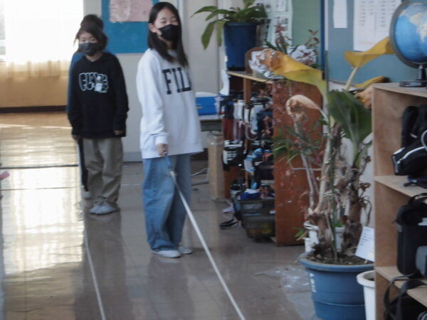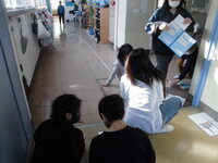 5年生は「平均」の学習をしています。ゆっくりと10歩歩き、その距離を測定し、距離を10歩で割ると自分の歩幅1歩分の長さがわかります。一人3回ずつ計測していました。