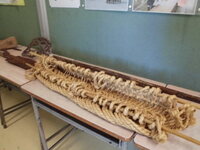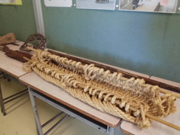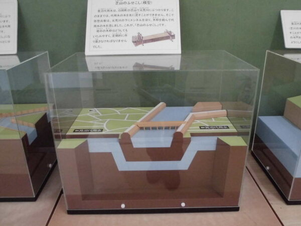 4年生は、「井沢弥惣兵衛と見沼の開発」について学んでいます。人々の生活を豊かにするために、先人が工夫して作った用水路の立体模型と用水路を作る際に使用した工具、農具等を廊下に展示してあります。