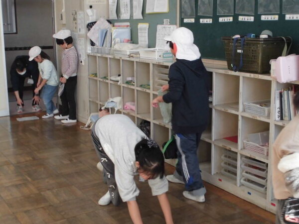 教室、廊下、机や椅子、特別教室など、みんなできれいに掃除しました。