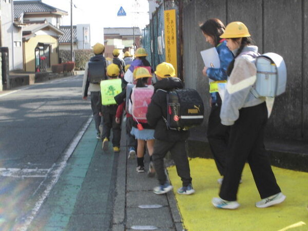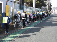 登校班ごとに集合して、2学期の登校について振り返りをしました。登校、下校共に、1.グリーンベルトの内側を歩くこと、2.友だちと横に広がって歩かないこと、3.道を渡るときは左右を確認することを話しました。交通事故にはくれぐれも気をつけてください