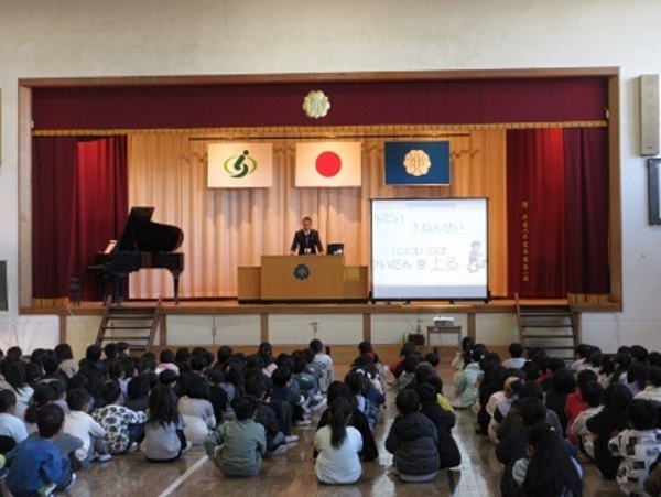 「新年あけましておめでとうございます。今年もよろしくお願いいたします。」新しい年、新しい学期の始まりの日、約2週間ぶりに登校してきた子どもたち、キラキラと目を輝かせている子、ちょっとだけ眠そうな子、期待にあふれている子等、様々でした。今年も目標をもってがんばっていきましょう。
