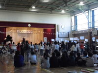 今までいろいろな場面で活躍してくれた6年生へ、在校生からありがとうの気持ちをこめた歌や呼びかけ等のメッセージを贈りました。体育館が温かい空気に包まれ、感激し、涙を流す児童もいました。