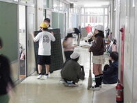 一年間、自分たちが使った教室、机椅子、廊下等、大掃除をしました。次に使う人たちが気持ちよく使えるように、しっかりときれいにしました。保護者ボランティアさんには、ベランダをきれいにしていただきました。